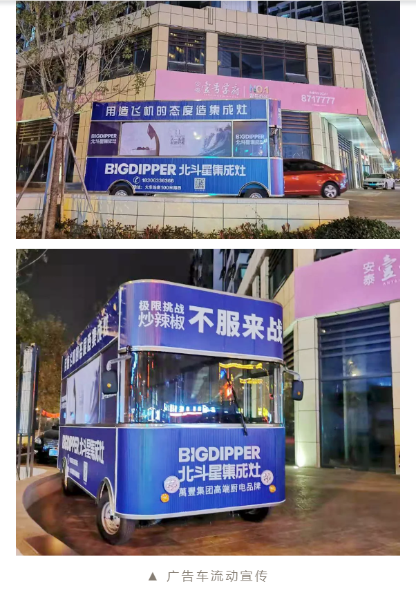 北斗星日照店還相繼對(duì)各大小區(qū)電梯廣告、消防宣傳欄以及小區(qū)圍擋等進(jìn)行精準(zhǔn)投放,聚焦目標(biāo)受眾,迅速引爆市場(chǎng),讓小區(qū)周邊的顧客都能看到北斗星的廣告,在產(chǎn)品以外加強(qiáng)與消費(fèi)者的情感溝通,鞏固北斗星集成灶在日照城市的廣告熱度。
