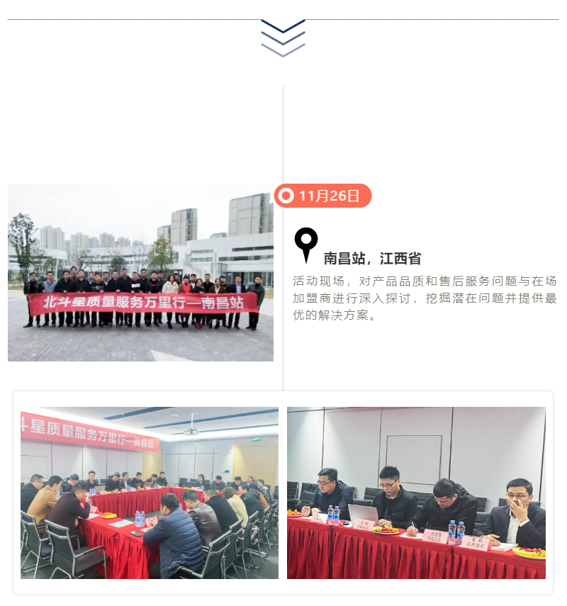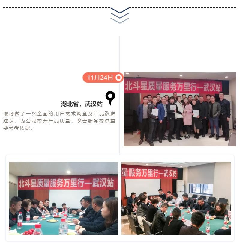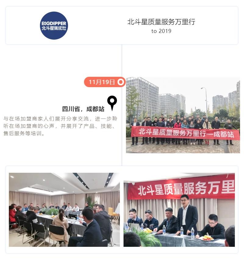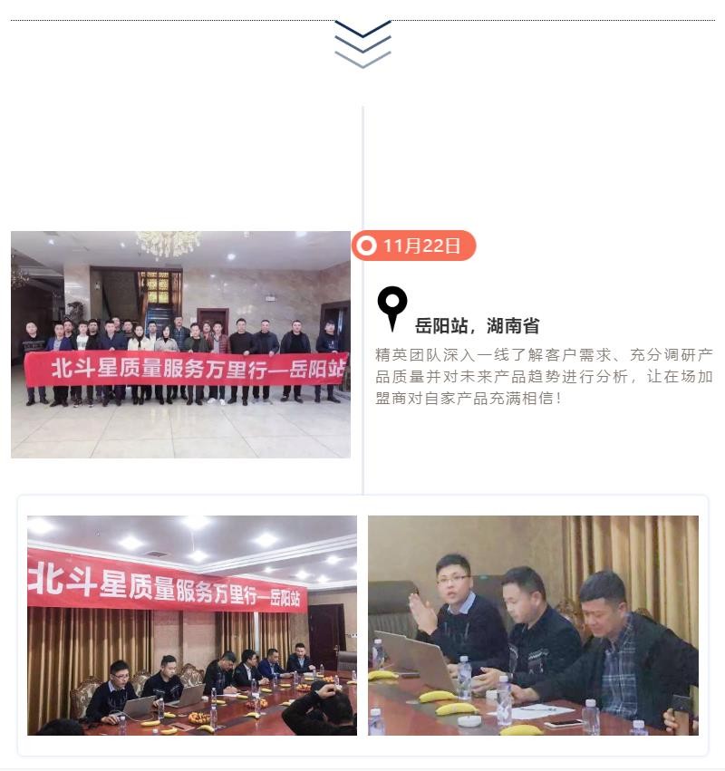 11月19日-12月15日,長達(dá)15天的“北斗星質(zhì)量服務(wù)萬里行”圓滿結(jié)束,北斗星集成灶制造總監(jiān)沈思恩先生親自帶隊(duì),率領(lǐng)北斗星售后服務(wù)、產(chǎn)品研發(fā)、品質(zhì)等部門精英人員一起深入一線,對(duì)全國各大銷售戰(zhàn)區(qū)進(jìn)行回訪。