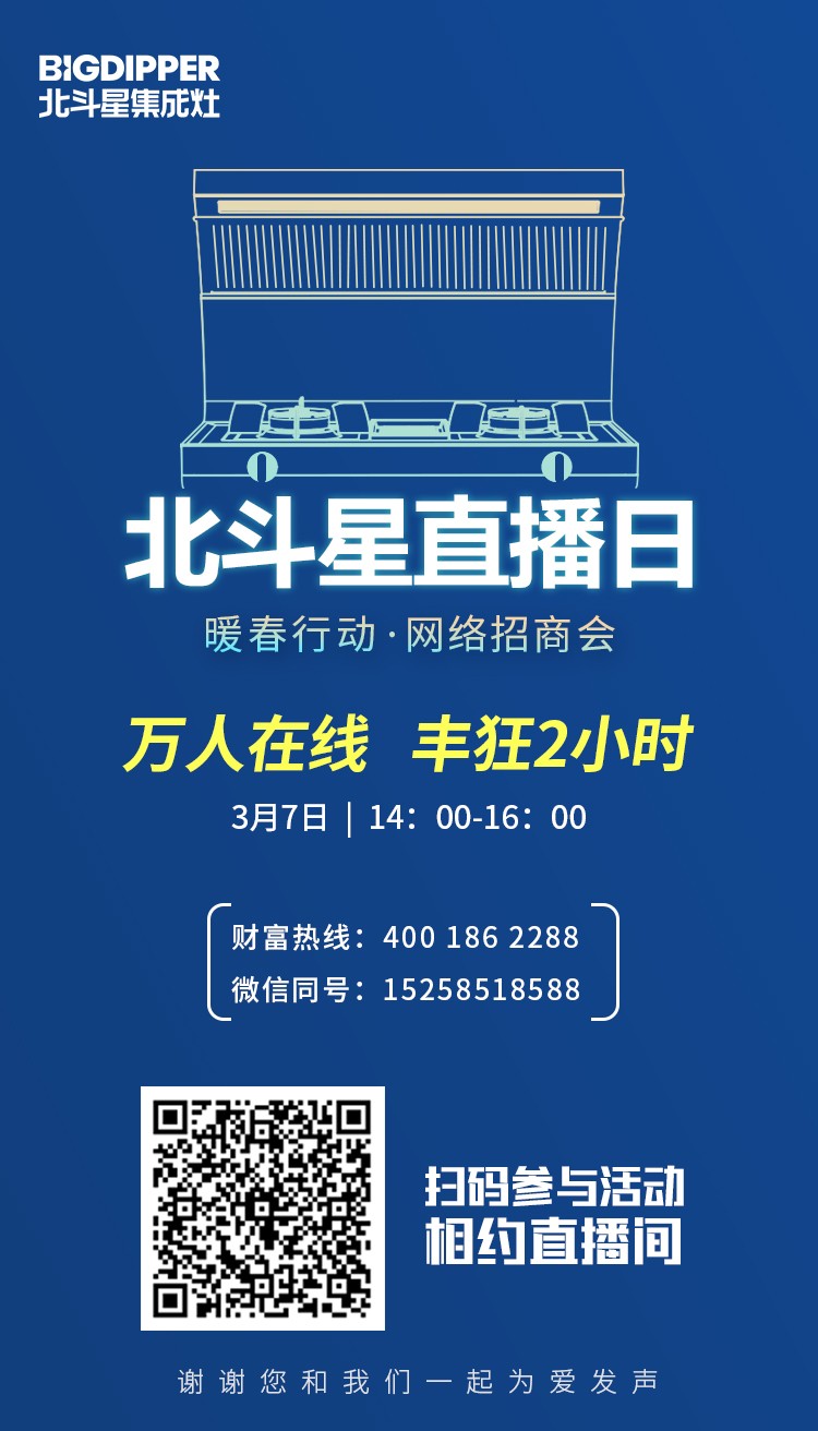 直播現(xiàn)場,公司高層大咖齊齊出鏡!將為大家就北斗星的品牌優(yōu)勢、設計研發(fā)、精工智造、最美廚房等多方面進行講解,還有五星級大廚現(xiàn)場演繹抗疫健康美食,深度解析北斗星財富密碼,帶您近距離全面了解北斗星!