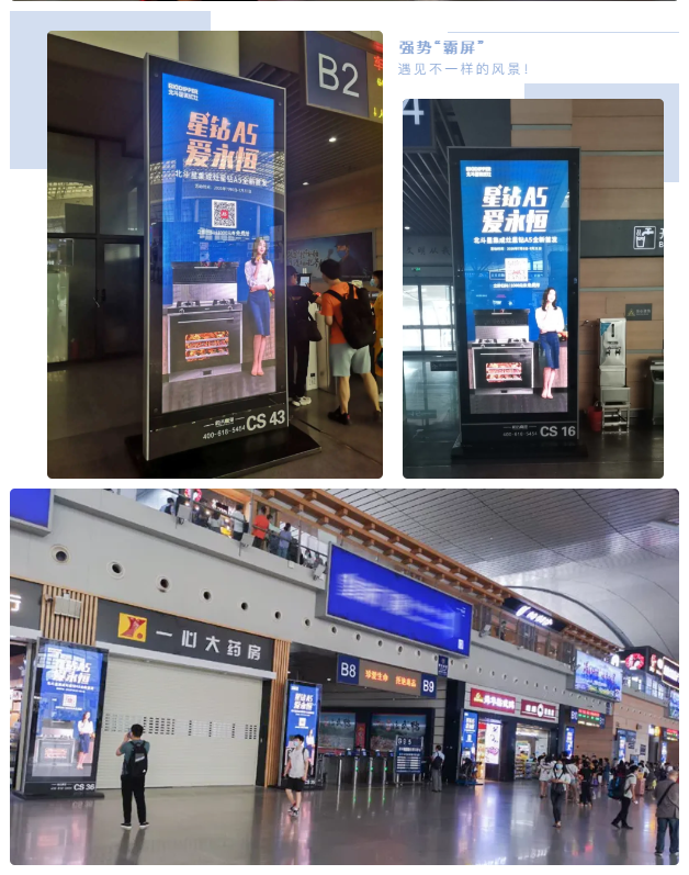 北斗星長(zhǎng)沙店此次廣告的投放,主要分布在長(zhǎng)沙高鐵南站到達(dá)、出發(fā)層等人流量密集的重點(diǎn)位置,廣告位多達(dá)65個(gè),搶占顯眼核心資源,為長(zhǎng)沙門店提供強(qiáng)大的品牌支持。同時(shí),通過高鐵站廣告大范圍傳播方式提高廣告與受眾的接觸頻率,北斗星集成灶勢(shì)將成為消費(fèi)者更熟悉、更信賴、更喜愛的高端廚電品牌!