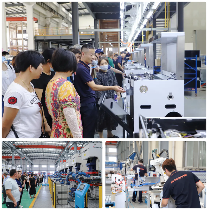 隨后,參觀團開始探廠北斗星公司智能化生產基地。領跑行業的無縫激光焊接、一體模型壓鑄、重力澆筑等高級工藝,炫酷智能的生產線,排列有序的產品展示,鮮明醒目的標語口號。吸引著客戶的目光,停下腳步參觀、聽講,并紛紛贊嘆,“北斗精神,匠心智造”實至名歸!