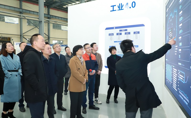 黃縣長一行實地考察了北斗星智慧工廠,聽取了北斗星兩化融合項目負責人關于智能數字生產線戰略布局的講解。