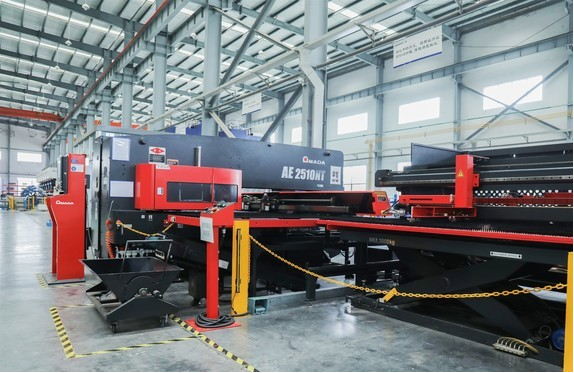 車間的數(shù)控沖剪系統(tǒng)生產(chǎn)區(qū)域,能夠根據(jù)已編好的程序,使機床自動加工零件,實現(xiàn)了鋼板的合理化切割利用,在提升生產(chǎn)效率的同時,也大幅降低了原材料的浪費。