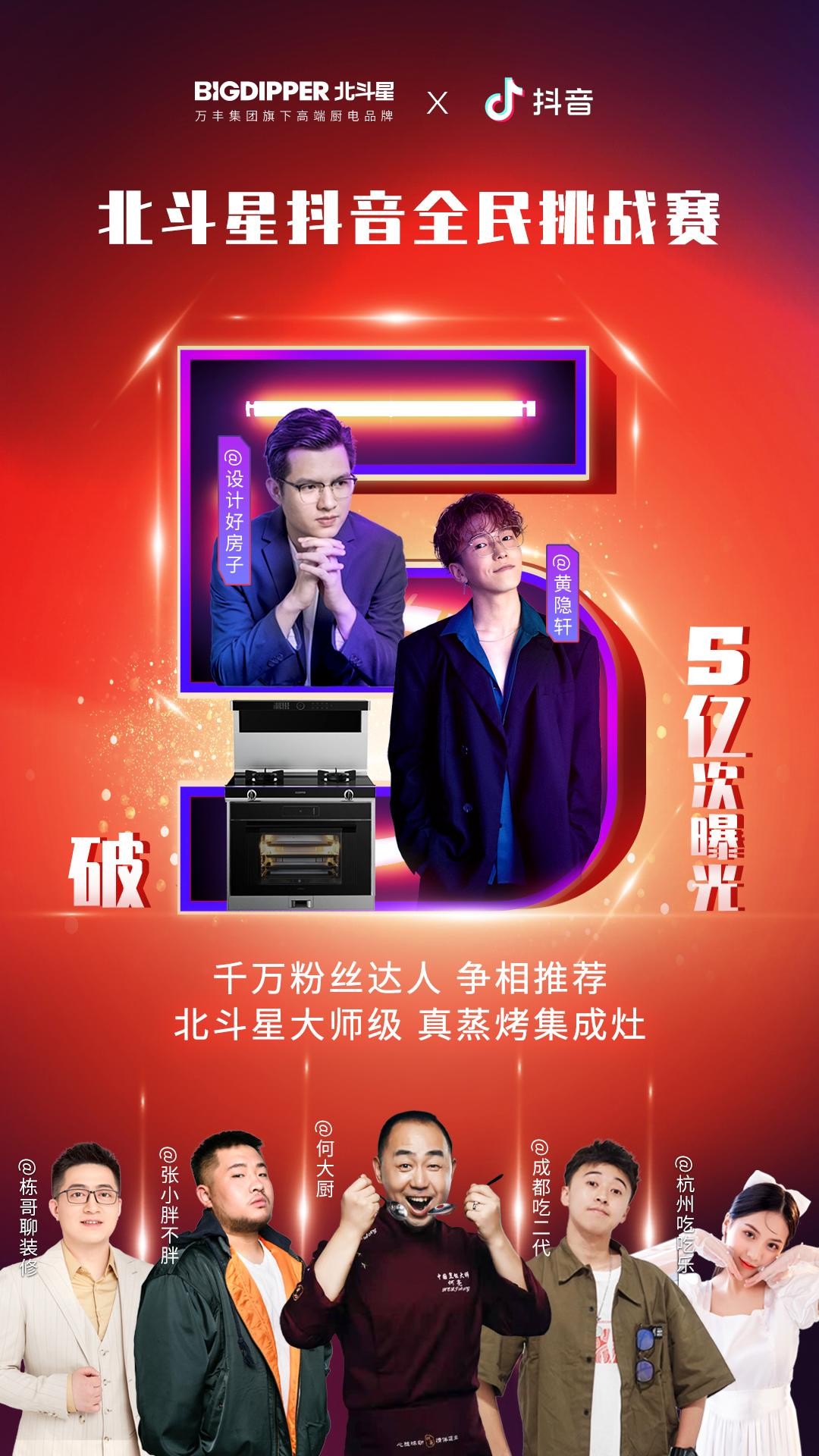 在品牌渠道上,北斗星集成灶的發(fā)展,從邀請品牌愛家形象大使郎朗作為代言人、聯(lián)合新昌文旅演繹美食文化“浙東天姥唐詩宴”、攜手中國烹飪大師何亮以及米其林星廚開展美食教學、“大師級 真蒸烤”點亮重慶地標WFC,再到全力開拓線上市場以及通過互聯(lián)網,聯(lián)合抖音上線全民挑戰(zhàn)賽,曝光量破五億次,大大拓寬了品牌影響力,全方位造勢,賦能北斗星品牌傳播,為大家塑造一個“大師級·真蒸烤”的高端廚電品牌形象,改變了大家對于廚電品牌的傳統(tǒng)認知。