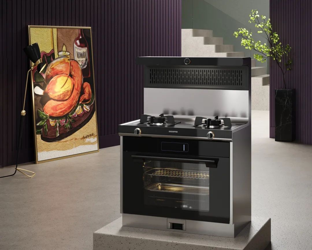 集成灶十大品牌,北斗星集成灶,內置36大師菜譜,需將食材配料準備好后,放進蒸烤箱內,選擇相應模式即可,自動烹飪,無需看守~36道大菜一鍵搞定,下廚像點菜一樣簡單。無明火烹飪,無油煙困擾;三層隔熱玻璃,有效保持廚間舒爽。