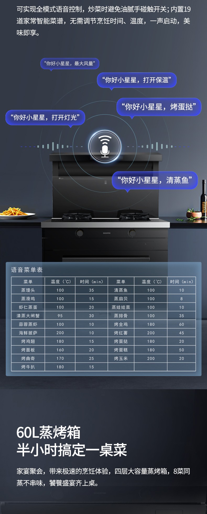 60L蒸烤內膽,一聲令下美味到家
